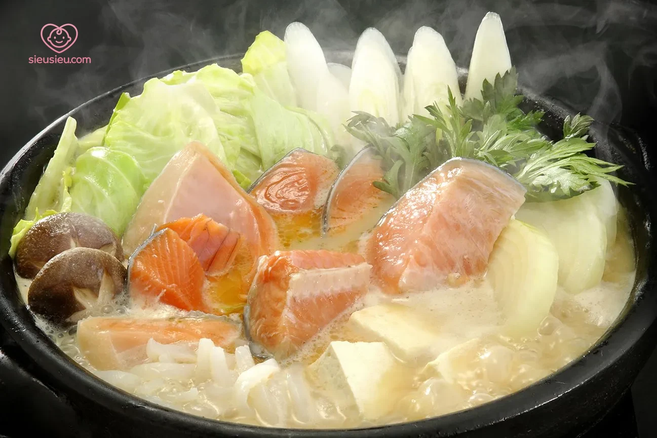 Món lẩu cá hồi nấu tương rất nổi tiếng. Nước dùng nấu từ tảo và tương đậu, rồi cho cá hồi, đậu phụ, nấm, cải thảo, hành boa rô vào nồi.